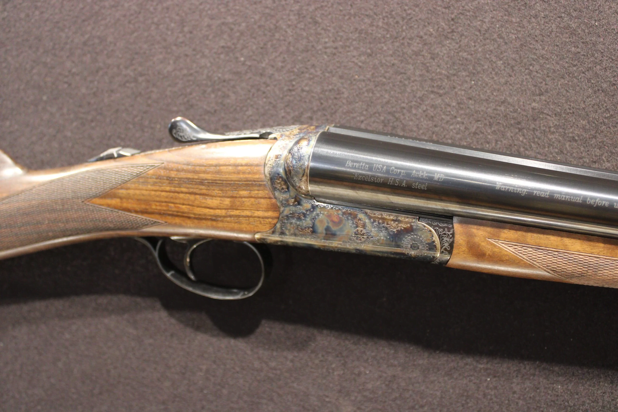 Beretta’s 486 DS takes advantage of the latest 5 axis laser technology, which is capable of embellishing rounded surfaces while maintaining perfect continuity in the design. This type of highly figured, contrast effect engraving typically characterises premium shotguns. With the deep scroll motif extended to the receiver shoulders, top lever, trigger guard, forend iron and forend tip, the action of this gun is completely captivating. Additionally, the restyled gun benefits from Beretta’s renowned Steelium barrels with their excellent ballistics, to create the most modern, reliable and sumptuous side by side.